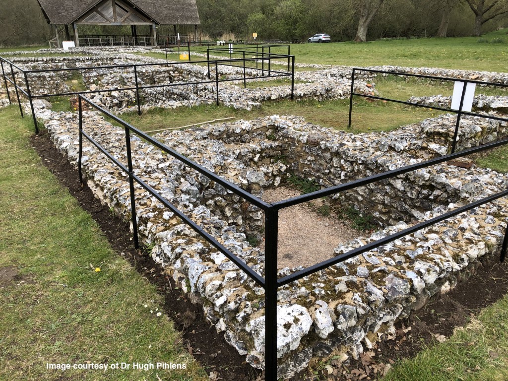 The villa fell into decay around 400, shortly before the Roman evacuation of Britain. The mosaic floor was discovered in 1726 but was then reburied before being rediscovered in 1976. Little remains of the rest of the villa which flanks the Orpheus mosaic and is spread out over a hectare of land, but the pattern of its exterior and internal walls, now marked out by modern low walls, gives a vivid impression of its size. Storyboards provide information on how the villa with its imposingly tall gatehouse would have looked. When the villa was being excavated traces of a medieval village were found, but it appears that the village was later deliberately dismantled prior to the creation of the manor and its demesne in the 16th century.