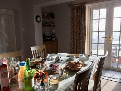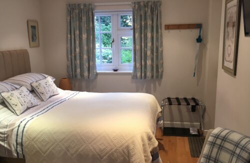 The accommodation is a ground-floor double or twin bedroom with an en-suite shower/toilet.  There are tea and coffee making facilities in the room.  Continental breakfast is served in the adjoining dining room or outside on the decking on warm days. The room is equipped with a small smart tv, desk and two chairs.