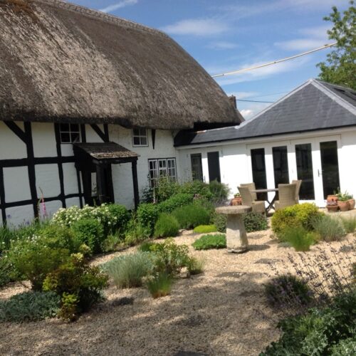 Set in one of the prettiest villages in the Vale of Pewsey, Priory Cottage in Easton Royal is an extremely charming, timbered and thatched cottage.  The Bed & Breakfast accommodation is in the pretty annexe set in the exquisite courtyard garden, with a separate pathway from the garden to the lane – so you have your own space.